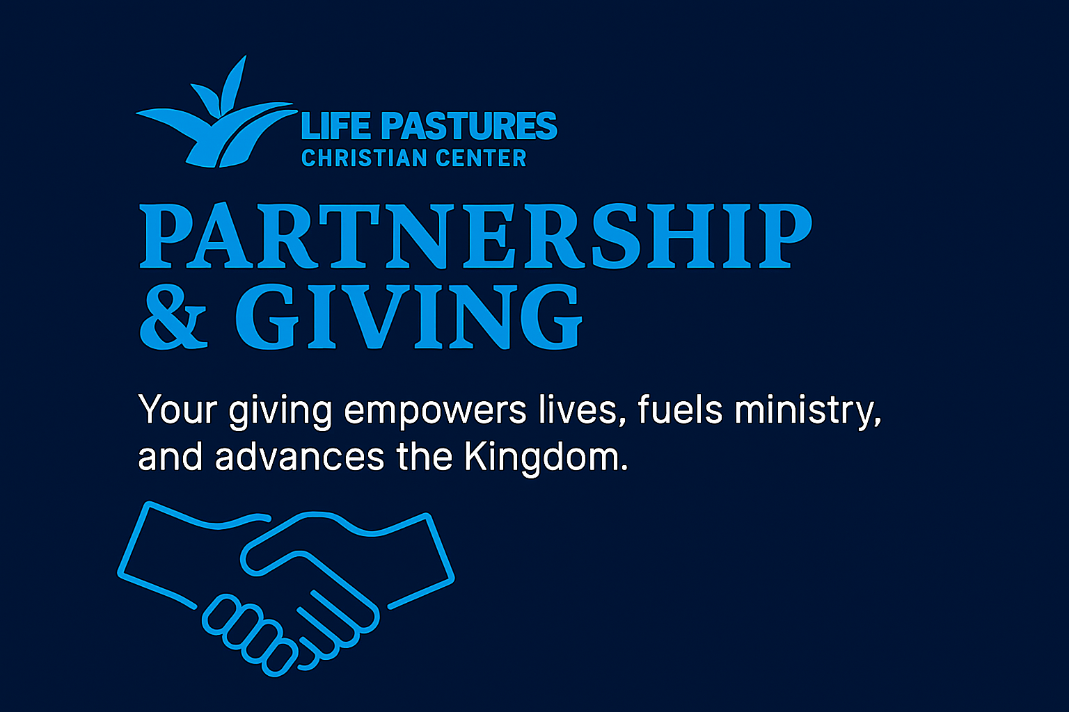 Join Us in Advancing the Kingdom At Life Pastures Christian Center, we believe in the power of partnership — ordinary people coming together to do extraordinary things for the Kingdom of God. Your giving enables us to raise flourishing believers, reach communities, and impact generations spiritually, socially, and materially.